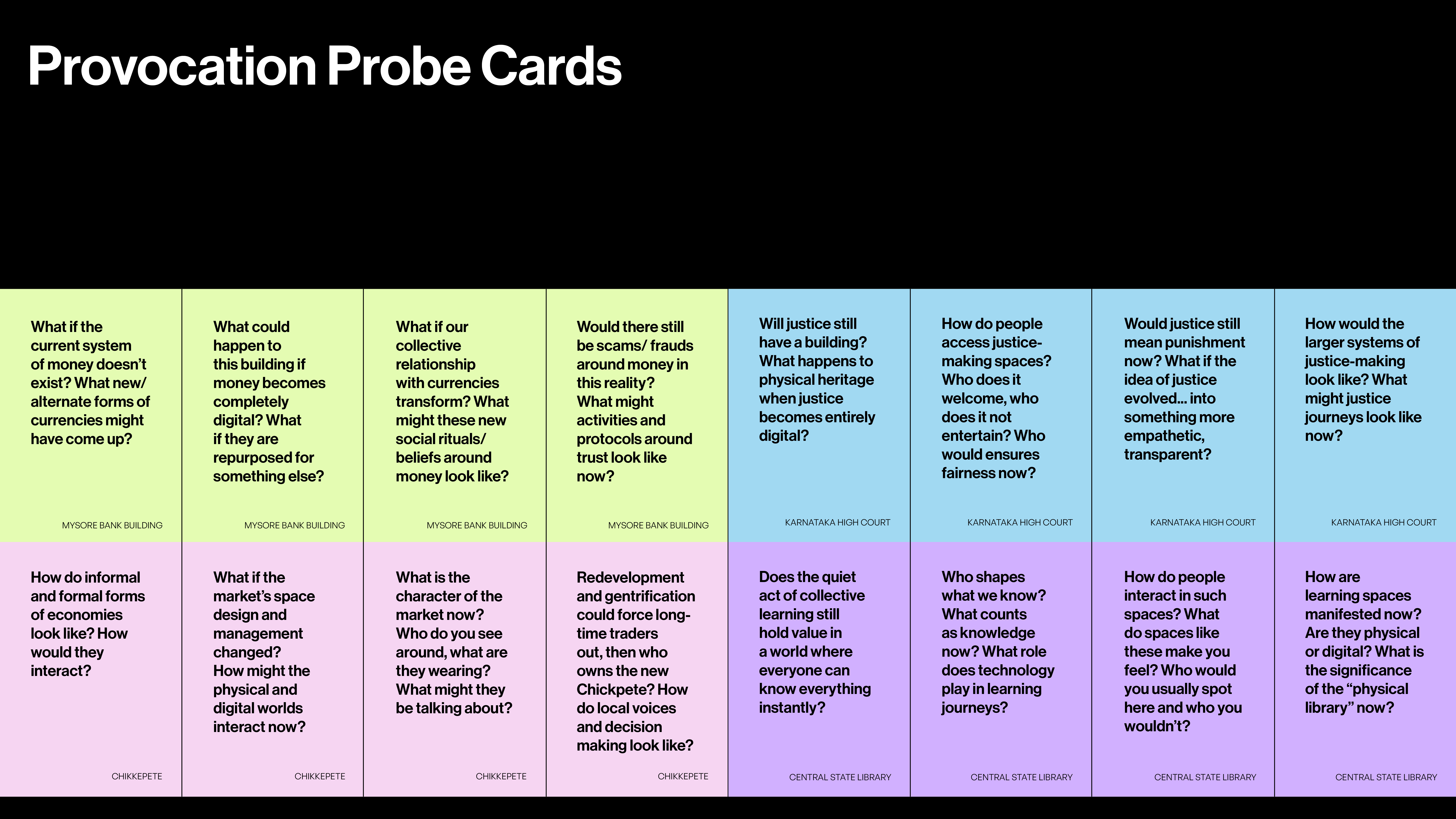 We came through a vast range of provocations, from blurring of boundaries of formal and informal businesses to the future of negotiation in overly structured systems. We talked about memory, tactility and convenience in shopping experiences. "Would this make Chikkapete lose its personal touch?" People imagined legal structures turning digital but debated whether the final say would still rest with humans. "Would technologies like AI be able to handle the subjectivities of judicial processes?" People imagined future libraries expanding to accomodate a range of varied knowledge systems from virtual to physical, visual to multi-sensorial.