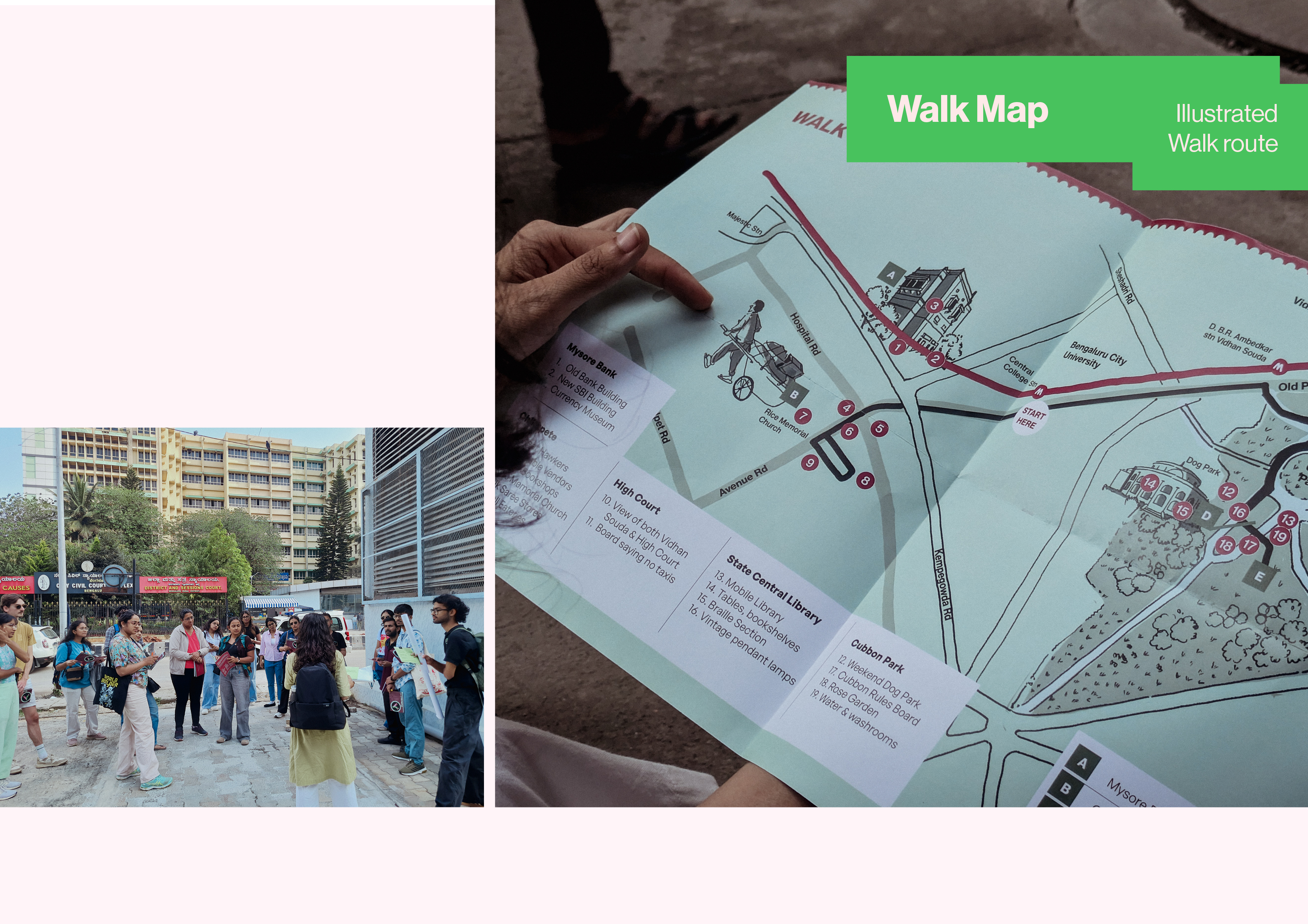 We invited participants to enter a time vortex with a map, future viewfinder and some place prompt cards. The idea was simple, as we walk we build this collective imaginary of how the surroundings, systems and objects would have transformed 25 years from now.